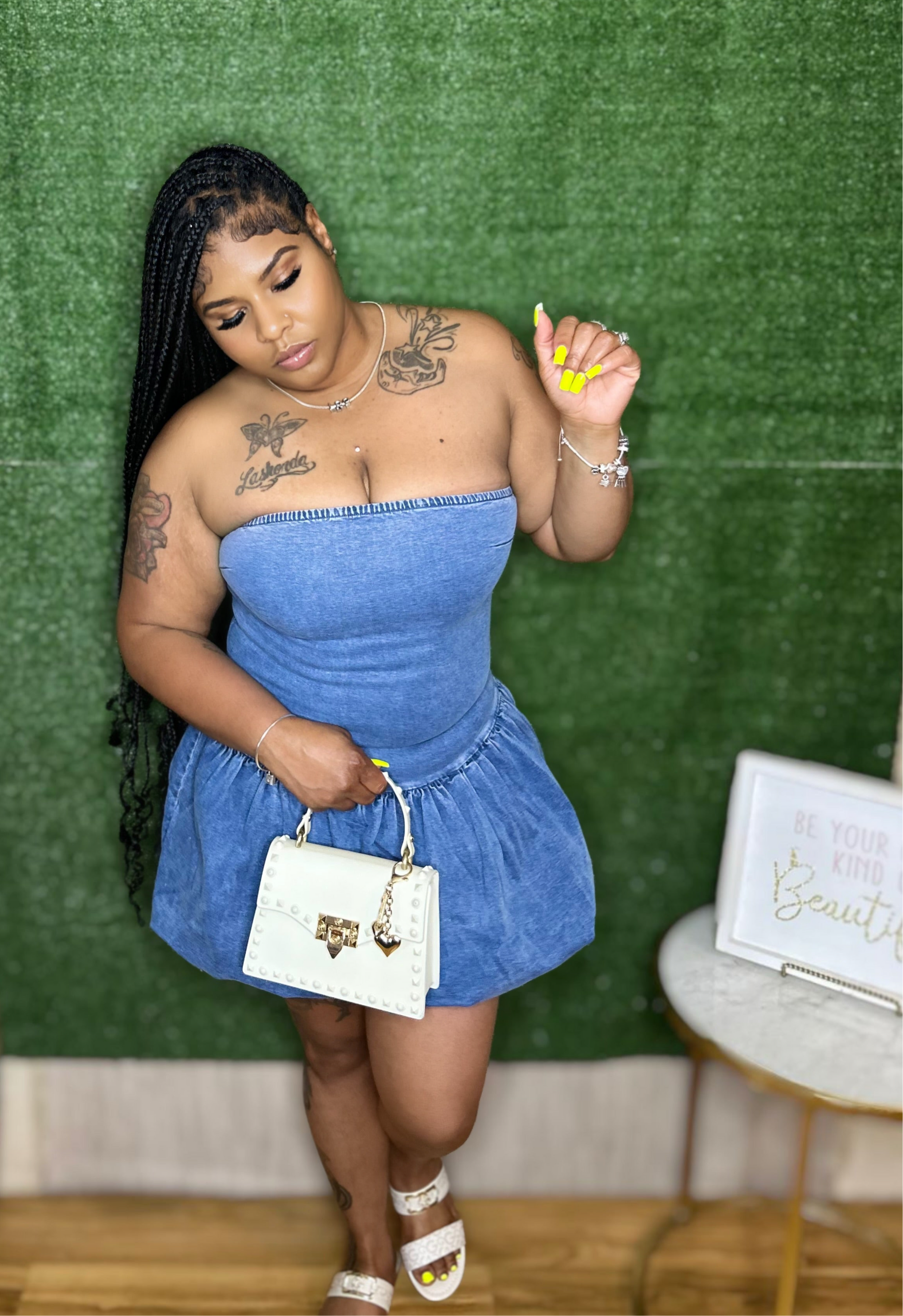 This flirty mini dress is your go-to for standing out. Designed with a playful bubble skirt and a chic strapless fit, it hugs your curves in all the right places while keeping things fun and feminine. Whether it’s brunch, date night, or a girls’ night out—you’ll be reaching for this dress again and again.